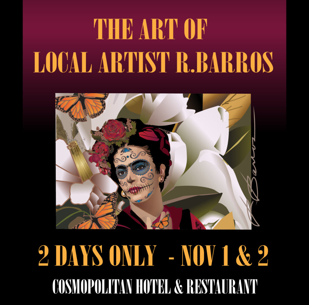 This year the Cosmopolitan Hotel also located in the State Park will host an outside gallery featuring the works by local artist Robert Barros. His art has been a part of the Day of the Dead scene in Old Town since the first celebration in 2010. It all began with his work being commissioned for the theme of the event and has become a synonymous tradition.